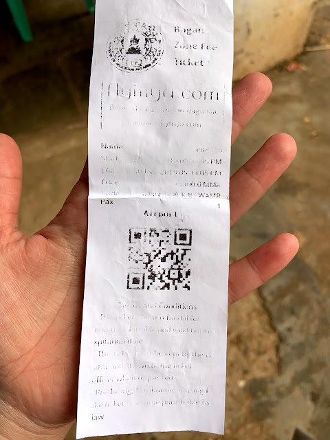 第二,Bagan的門票一買到要立刻用手機拍照。我們的Bagan門票是第一天到機場買的,門票是劣質墨水的感熱紙,才過了一天,我被驗票拿出來時,上面的墨水都已化成一片花白(我們的電子發票塞在包包過了幾個月字也都還好好的阿),驗票員的機器掃不到上面的QR Code,不讓我進去,我拿出上班的精神、苦口婆心跟他盧了很久,他才放我進去。還好只有部分寺廟和看夕陽的小山丘要查票,不用每次都盧。