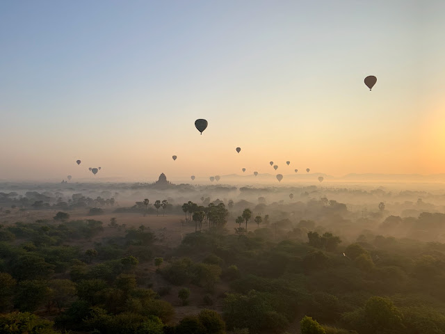 全程的亮點應該是在Bagan坐熱氣球看日出,雖然價錢非常坑爹,比土耳其熱氣球貴2倍(緬甸370美金 vs. 土耳其158歐元),但是坐完還是覺得真的值得,清晨的薄霧繚繞在寺廟之間在日出的光線下非常魔幻,是很棒的體驗。