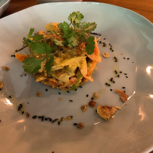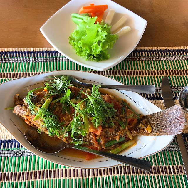 大批服務員穿著當地服飾的制服,殷勤招待客人,餐桌擺飾有小清新美感,食物的口味也正常,炸豆腐非常受歡迎,一下被一掃而空,我點的魚有濃濃調味蓋過淡水魚的土味,因為期待不高,堪稱滿意。