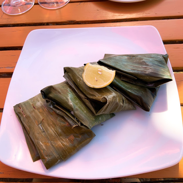 帶著一種踩雷的心情喝了四杯酒,其實一支白酒和Rose都正常,另一支白酒和紅酒味道就很化學。樹葉魚實在稱不上好吃,拿鐵沒料到會加糖。