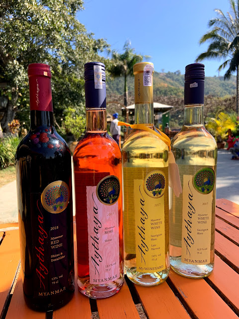Inle Lake附近有兩個酒莊,一間是Red Mountain,一間是Aythaya Vineyard,都是退休歐洲人開的。Red Mountain離Inle Lake比較近,很多人騎腳踏車去,Aythaya Vineyard比較遠,靠近東枝。