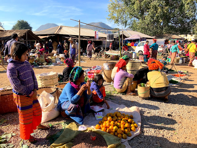 Indien市集感覺頗原汁原味,是Inle Lake一日遊景點中觀光味最淡的,很多穿著當地服飾的婦女在此地買菜,也有賣路邊攤小吃,和傳統花褲花裙,五顏六色,在豔陽下很好看。