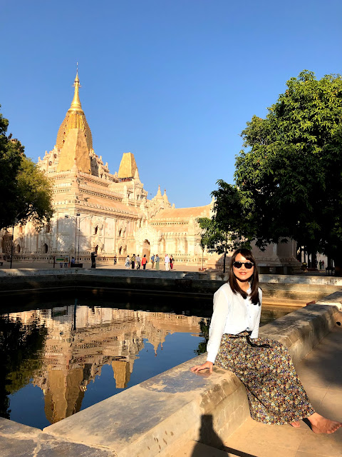 Ananda Temple面東,我們下午去,拍廟的正面會大背光,早上才是最美的。廟的某一角有一個水池,可以拍水中的Anada Temple。