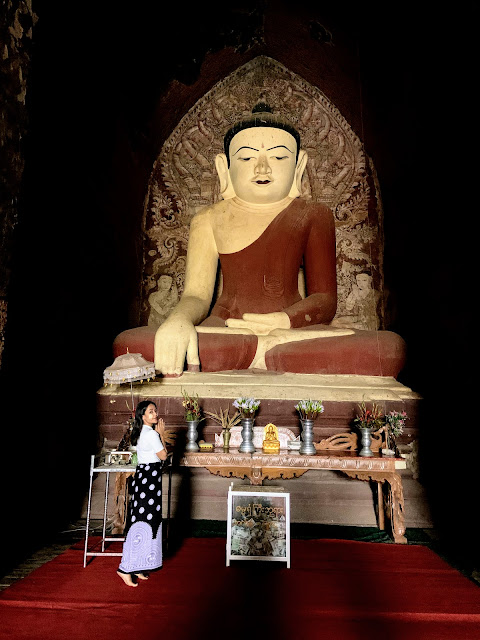 我到Gubyauk Gyi Temple的時候完全沒有其他觀光客,廟是鎖起來的,透過鐵欄杆只看到正殿最大的佛像,看不到什麼壁畫。