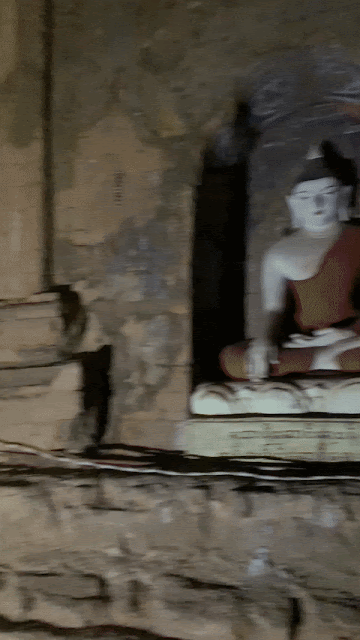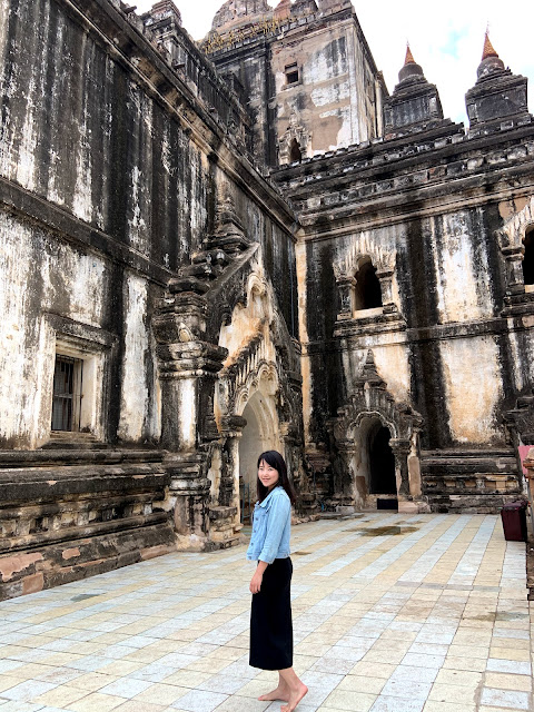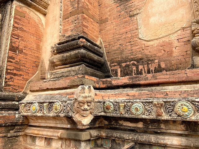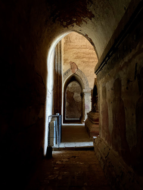 緬甸多地震,古代緬甸人怕廟的結構不穩會倒,所以把牆蓋得很厚,Dhammayangyi Temple是蒲甘最大的寺廟,牆壁非常厚,走入室內會有原來裡面這麼小的感覺,此外採光不佳,內部十分陰暗。據說因為緬甸人覺得這座廟不祥,所以沒有整修,無心插柳使它的原始狀態被保留下來。擁有如此引人入勝的鬼故事背景,我覺得這座廟應該永遠會被保留成這樣子了,定位成蒲甘崩密列、廢墟美學代表作。