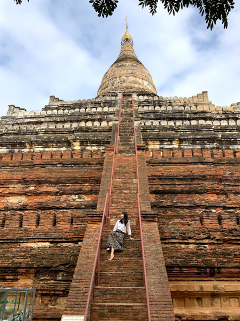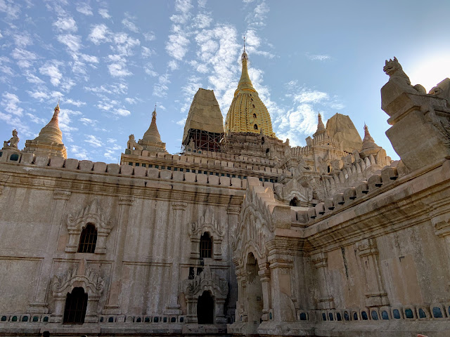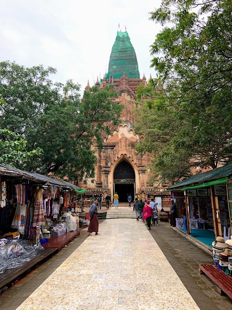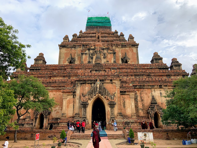這間寺廟是蓋鬧鬼那間寺廟的國王的爸爸蓋的,就是那個被兒子殺死的父王,也是緬甸漢高祖阿奴律的兒子的外孫。這間是蒲甘最高的寺廟,在熱氣球上可以看到它非常鶴立雞群。從地面看,巨大而斑駁的水泥色高牆也頗壯觀。