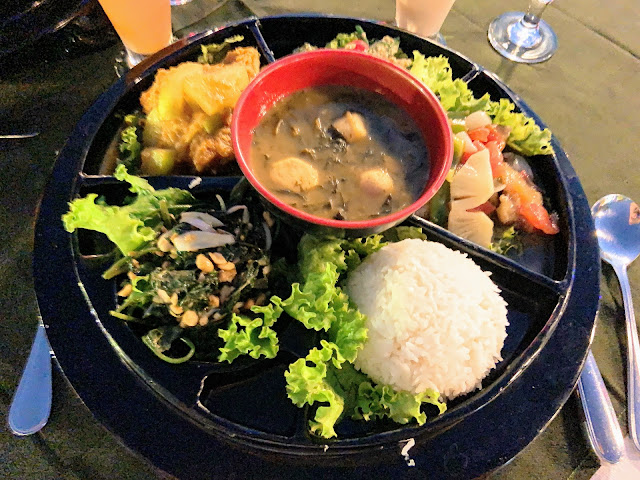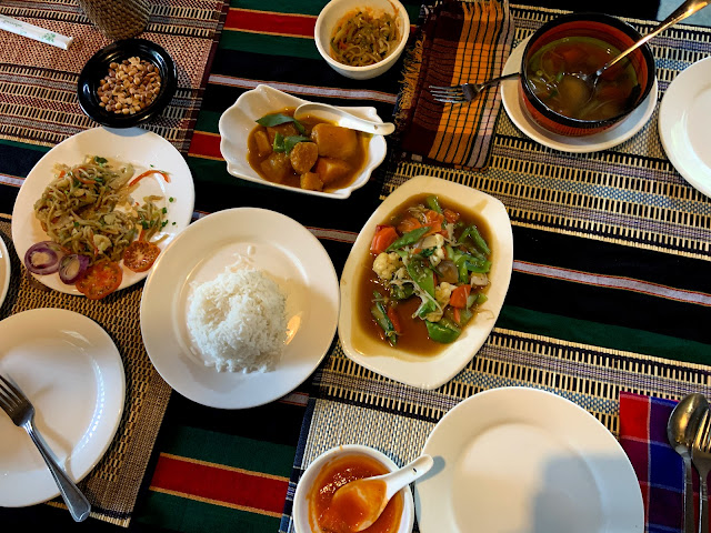 餐廳的口味跟我們的飯店半斤八兩,稱不上特別好吃,但還可以吃,我們點了亞洲套餐,是四菜一湯,擺盤非常漂亮,四菜中只有兩個菜比較好吃。總之在緬甸就是餓不死,但讓人不特別期待吃飯這件事情,堪稱東南亞新竹吧。