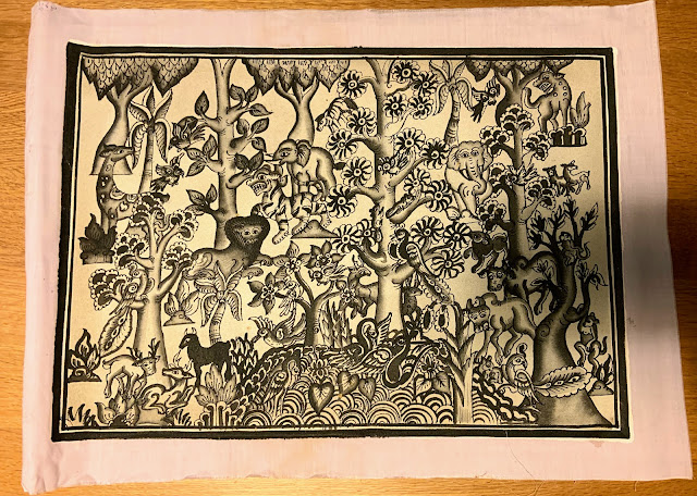 男人耐心帶我參觀了全部的浮雕,還稍微幫我介紹了一下,就在我內心覺得非常感激的時候,那個男人跑到正殿前面的畫攤坐下來,開始跟我介紹他的沙畫,原來導覽了半天用意是要賣畫,雖然有點上當的感覺,但此時也不好意思不買,就挑了一幅喜歡的。