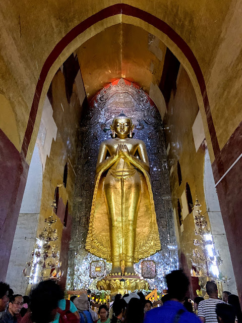蒲甘和仰光的寺廟大都有四個入口,東西南北每面各有一尊佛像,讓人想到泰國的四面佛。Ananda Temple佛像四尊都是立像,有9.5米高,身材非常高挑,跟平常台灣看到佛的形象很不一樣。
