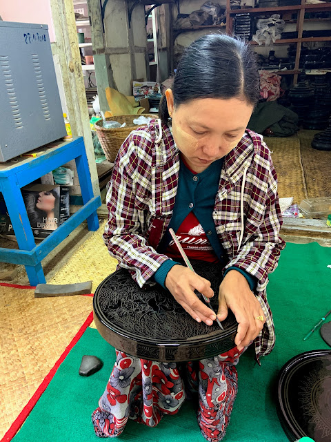 Manuha Temple附近有幾家有名的漆器手作工坊,逛廟逛膩了可以逛街一下,轉換心情。